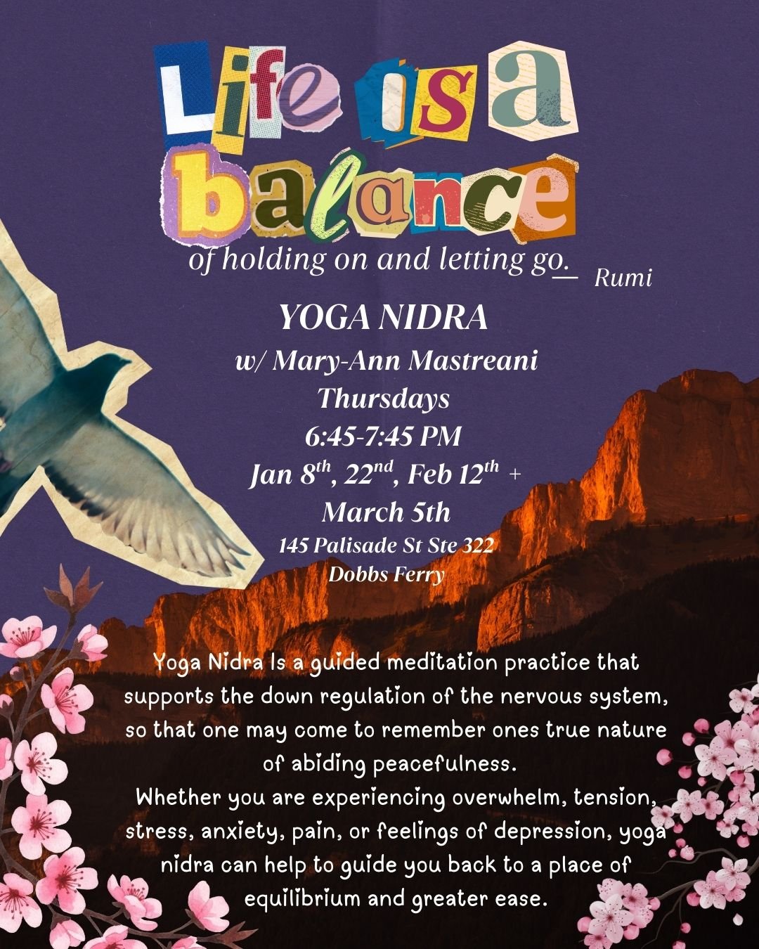 **(PLEASE BRING YOUR OWN MAT AND BLANKET TO THE RIVER’s EDGE LOCATION ONLY. OTHER LOCATIONS HAVE ALL YOU NEED!!!!!)***