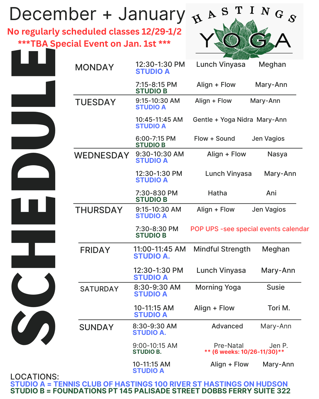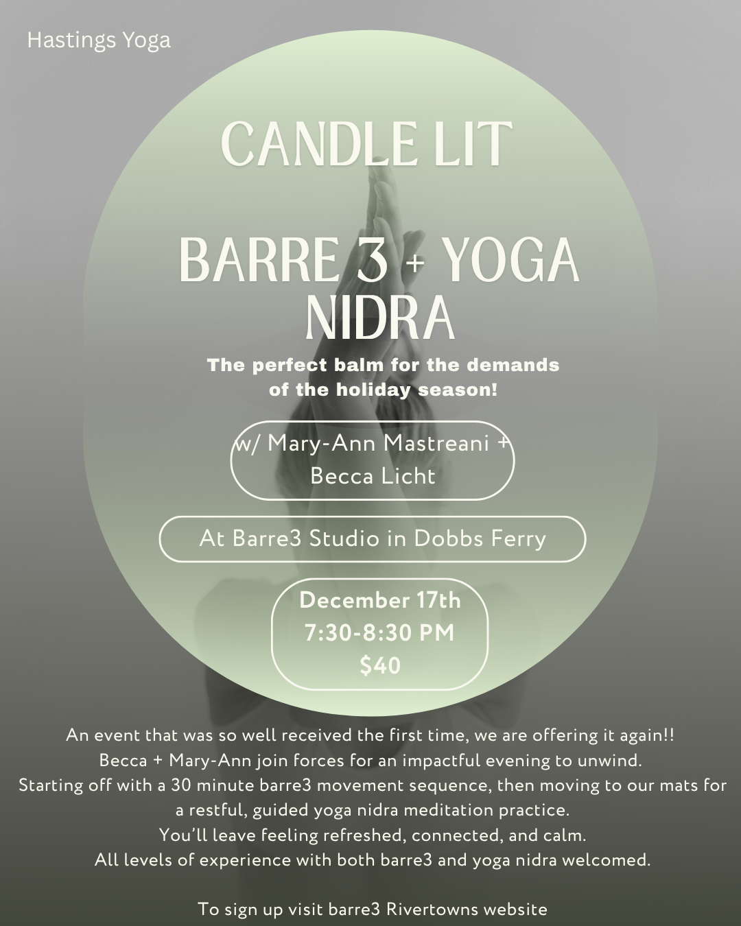 To book email maryann@hastingsnyyoga.com or venmo @Maryann-Mastreani or zelle mamastreani@gmail.com